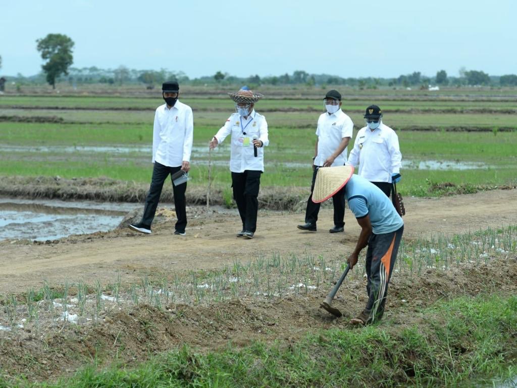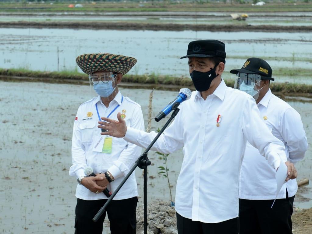HKTI.ORG – Presiden Joko Widodo meninjau lokasi pengembangan food estate atau lumbung pangan baru dalam kunjungan kerjanya ke Provinsi Kalimantan Tengah pada Kamis, 8 Oktober 2020 dengan tetap menerapkan protokol kesehatan.